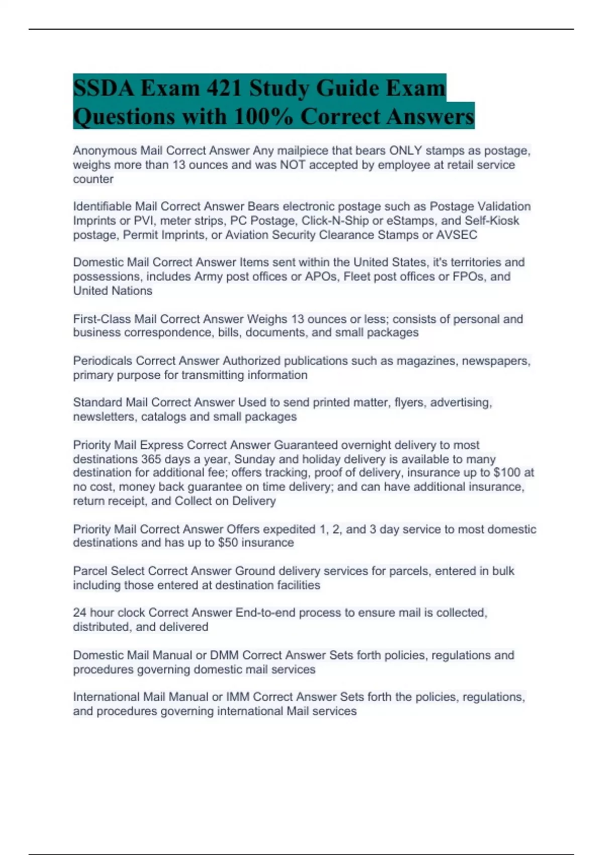 SSDA Exam 421 Study Guide Exam Questions with 100% Correct Answers