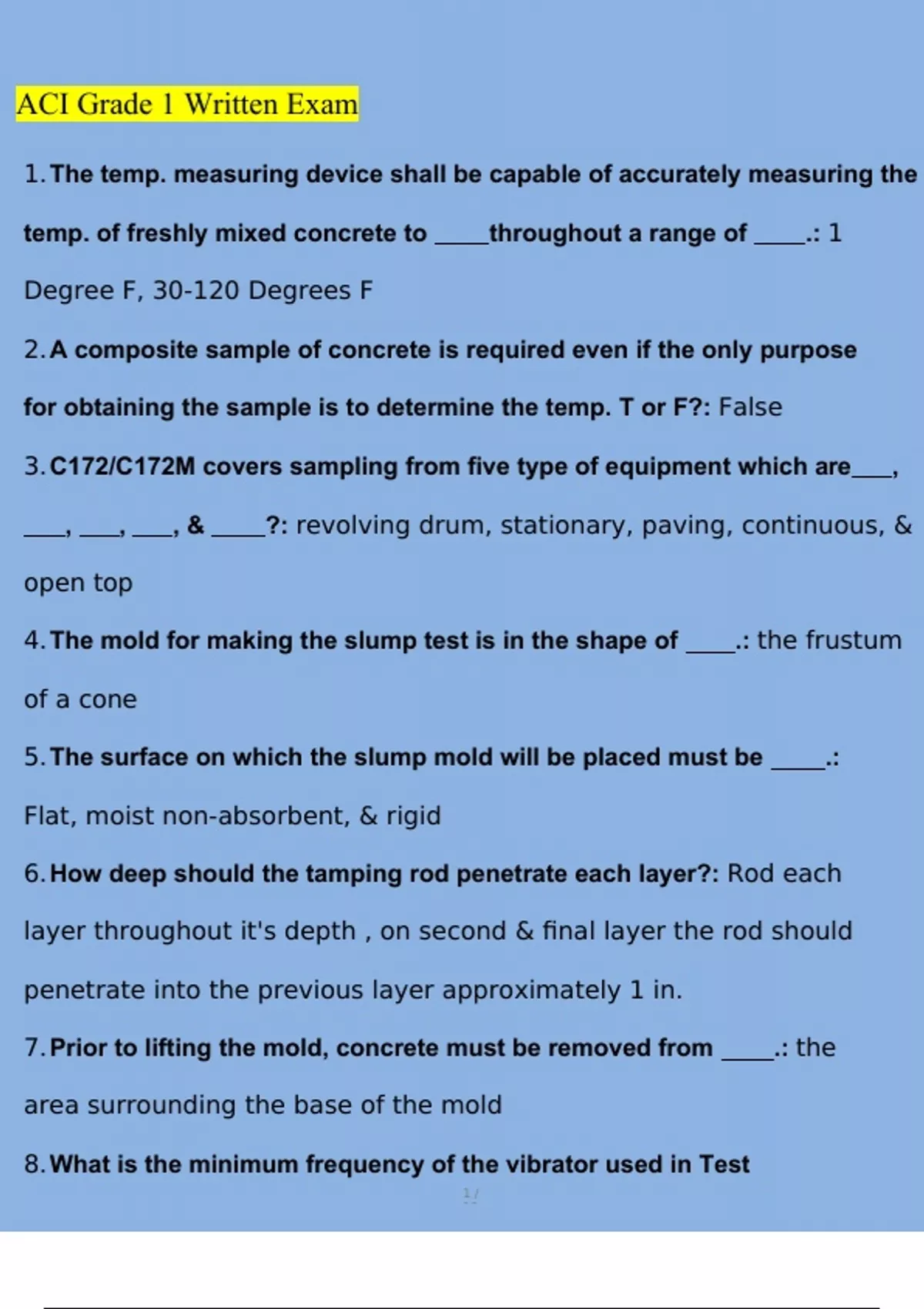 ACI Grade 1 Written Exam Questions and Answers (2023/2024) (Verified Answers)