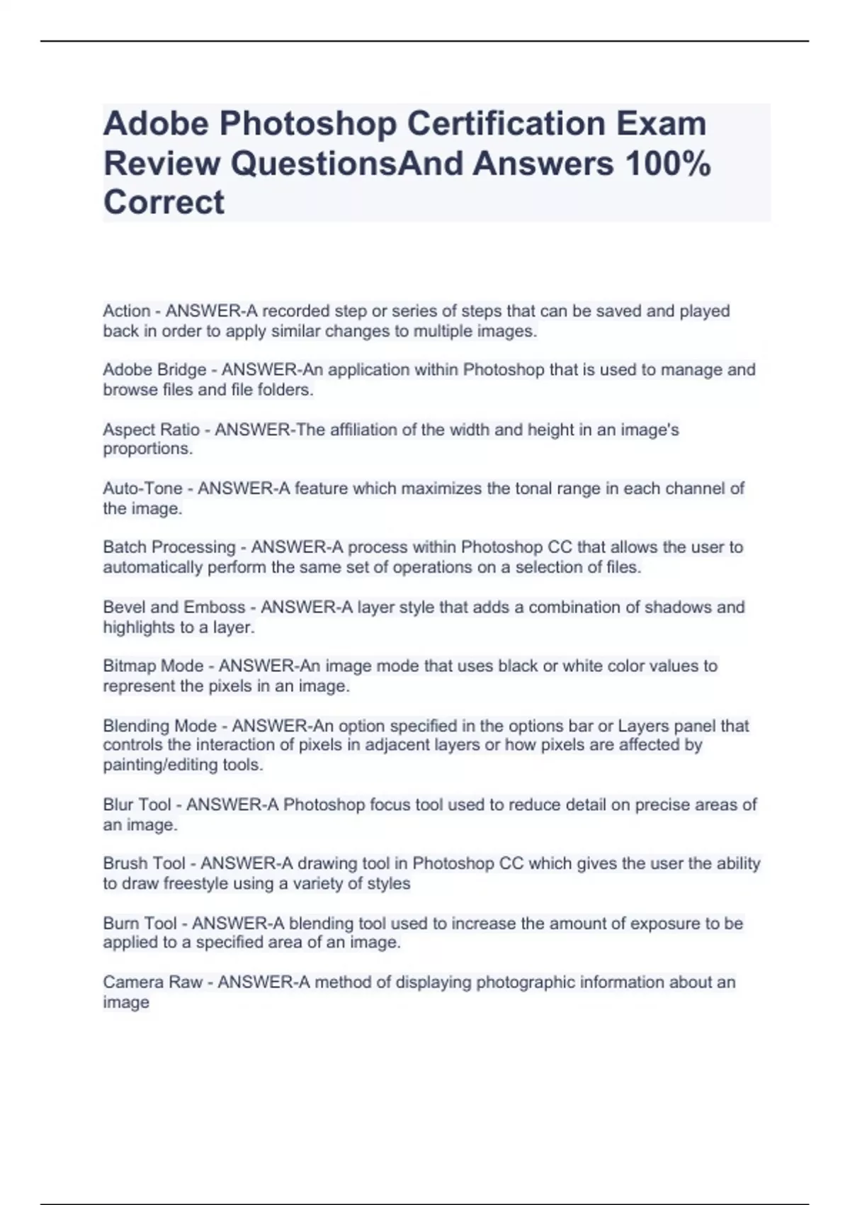 Adobe Photoshop Certification Exam Review QuestionsAnd Answers 100% Correct
