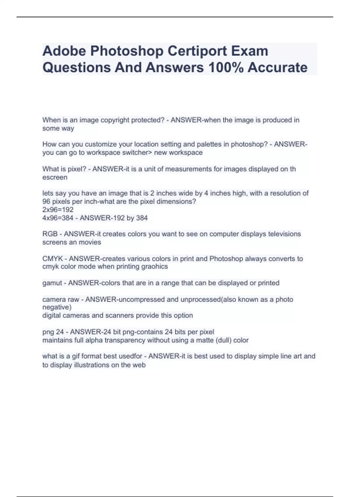 Adobe Photoshop Certiport Exam Questions And Answers 100% Accurate