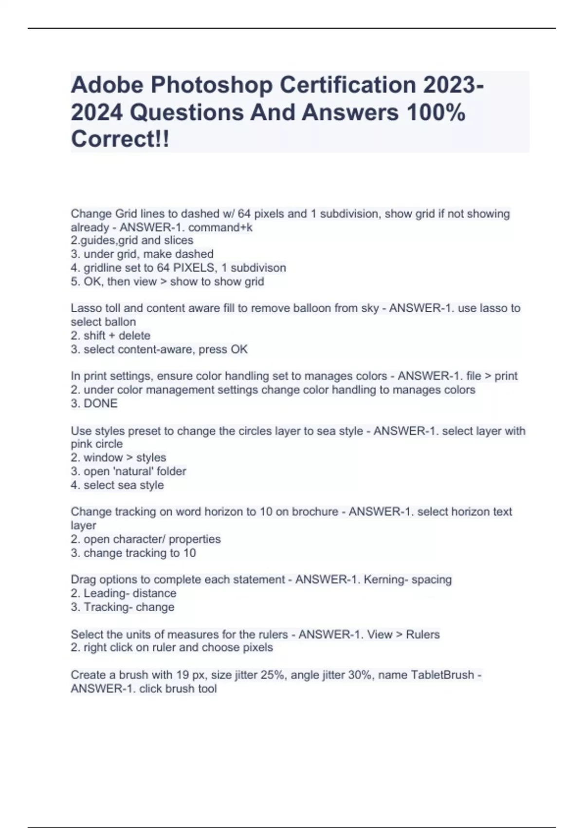 Adobe Photoshop Certification Questions And Answers 100% Correct!!
