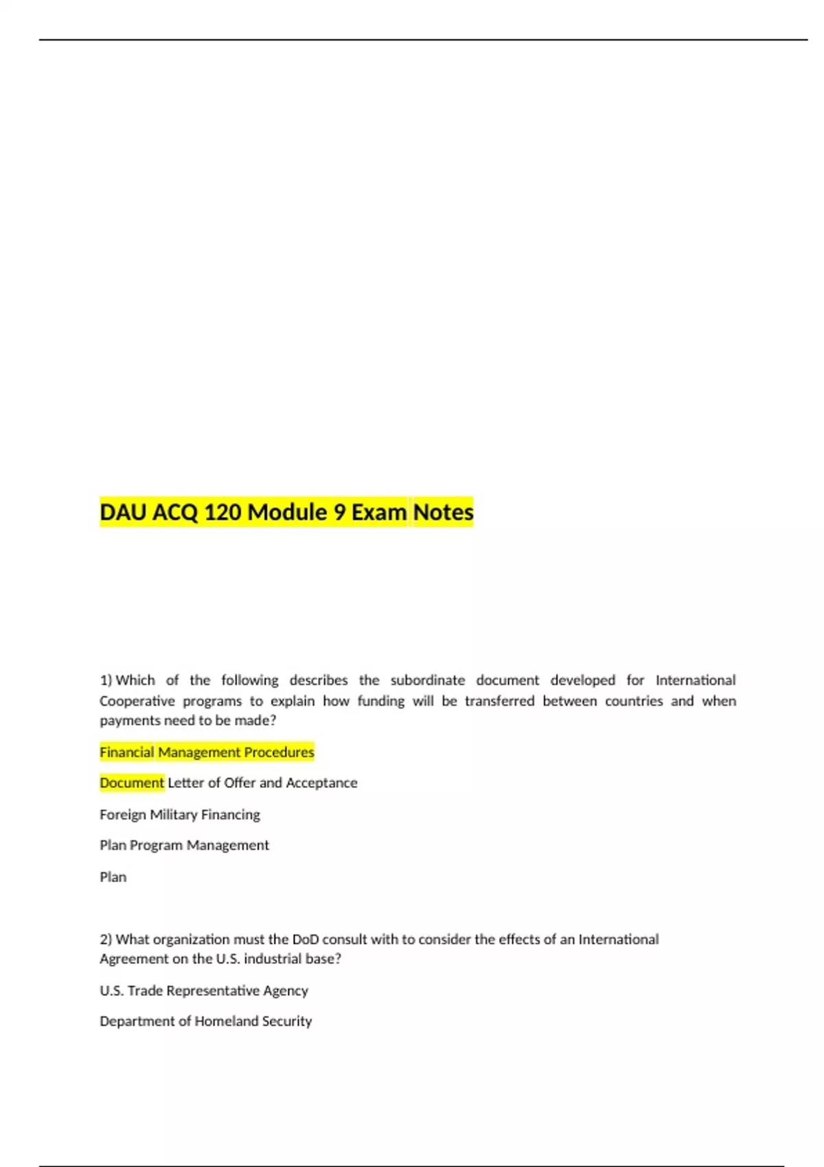DAU ACQ 120 Module 9 Exam Notes 2023/24