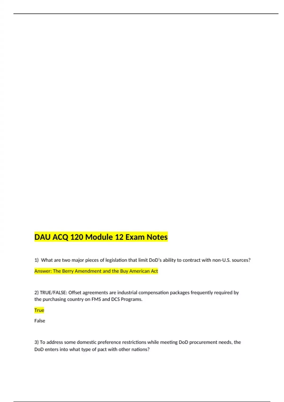 DAU ACQ 120 Module 12 Exam Notes 2023/24