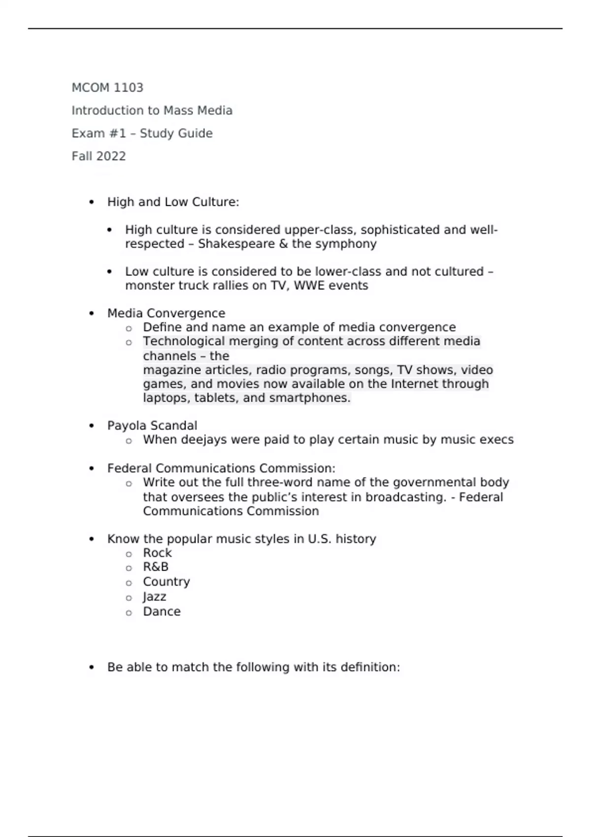 Exam #1 Study Guide