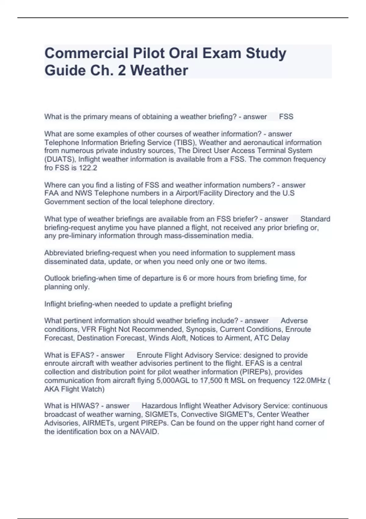 Commercial Pilot Oral Exam Study Guide Ch. 2 Weather