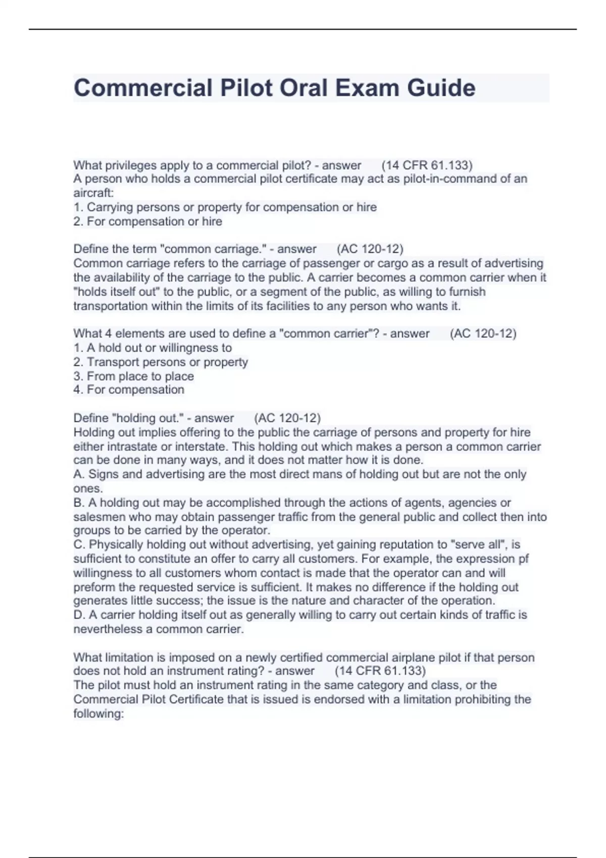 Commercial Pilot Oral Exam Guide Questions and Answers fully solved