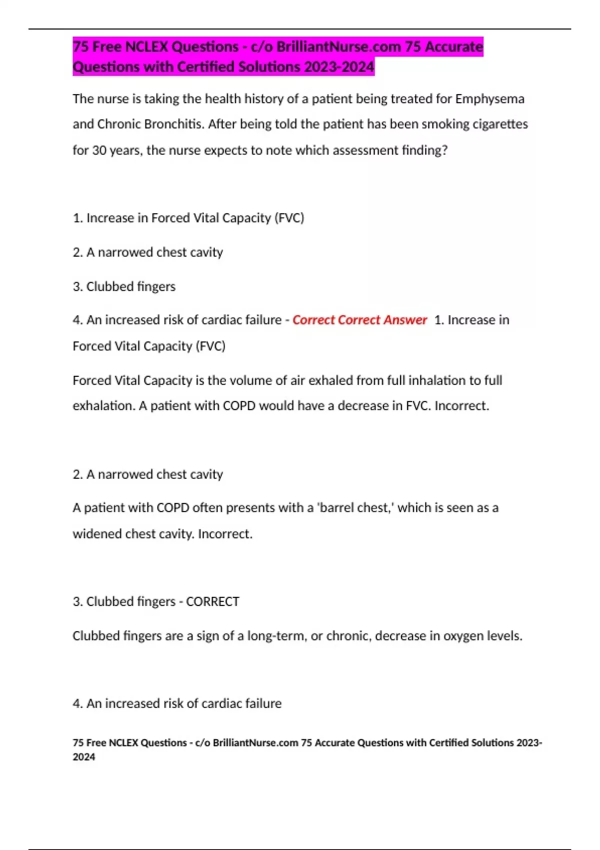 75 Free NCLEX Questions - c/o BrilliantNurse.com 75 Accurate Questions with Certified Solutions