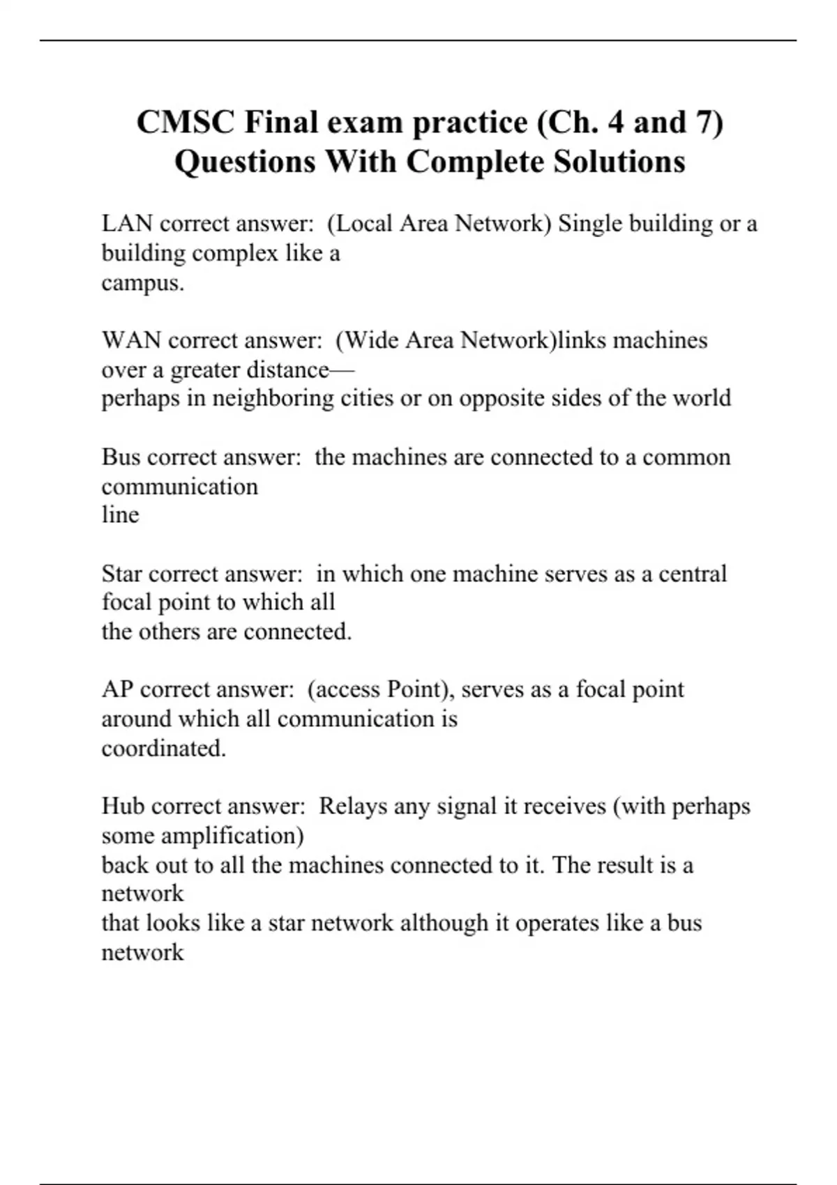 CMSC Final exam practice (Ch. 4 and 7) Questions With Complete Solutions