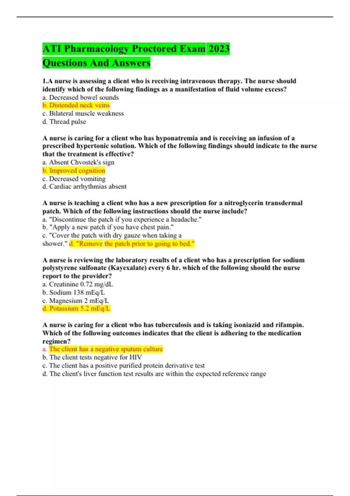 ATI Pharmacology Proctored Exam 2023 Questions And Answers