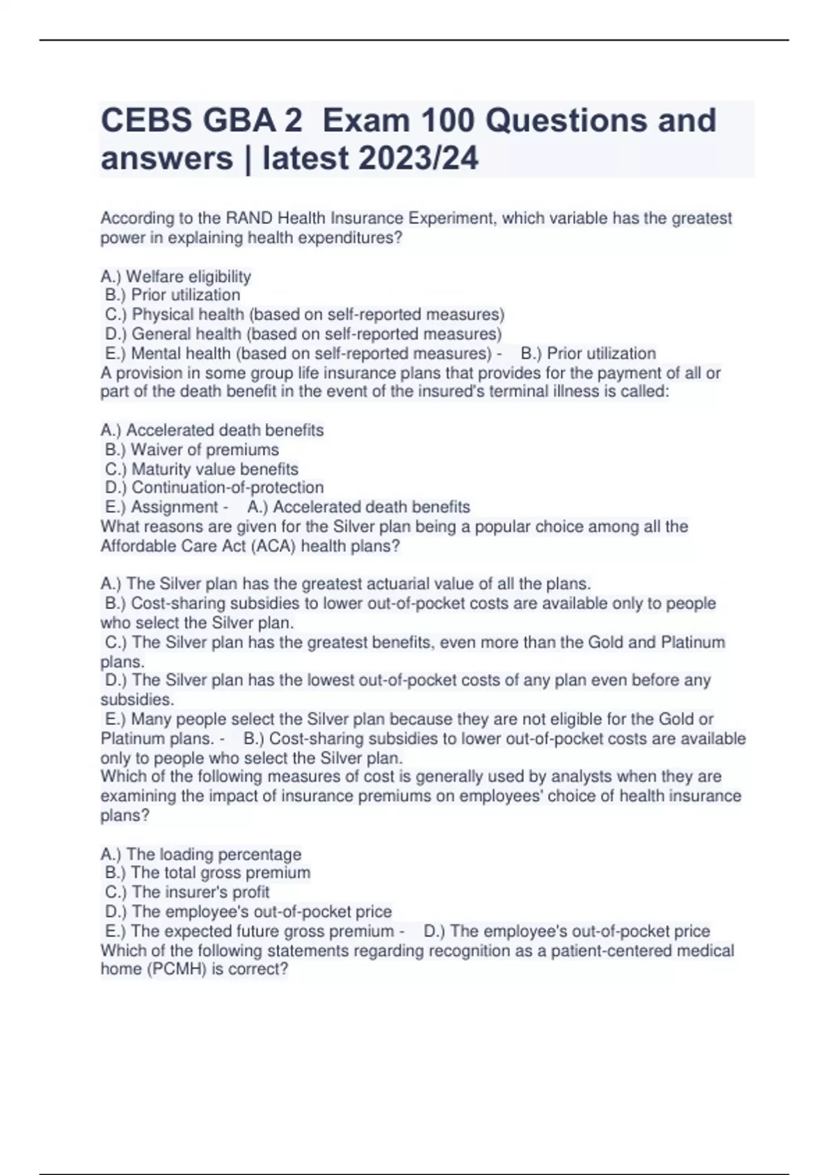 CEBS GBA 2 Exam 100 Questions and answers | latest 2023/24