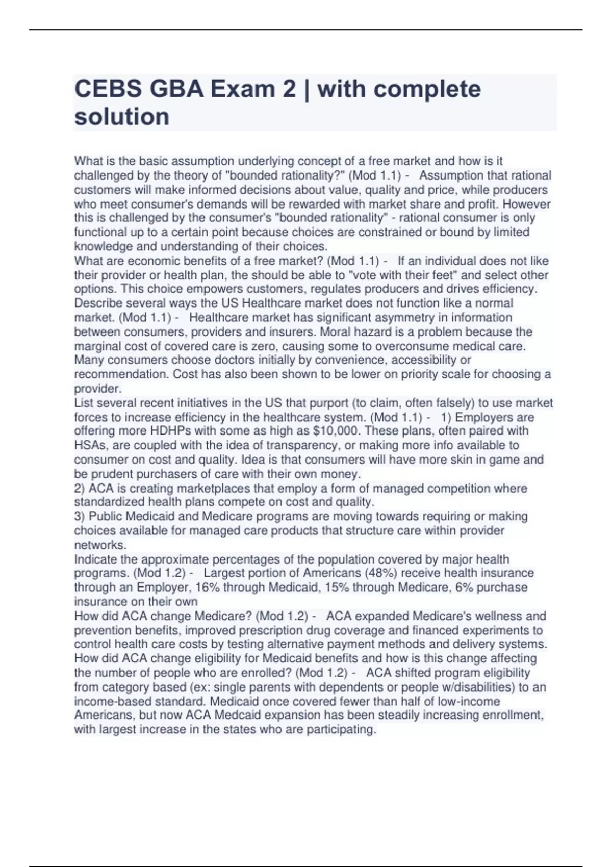 cebs gba exam 2 with complete solution