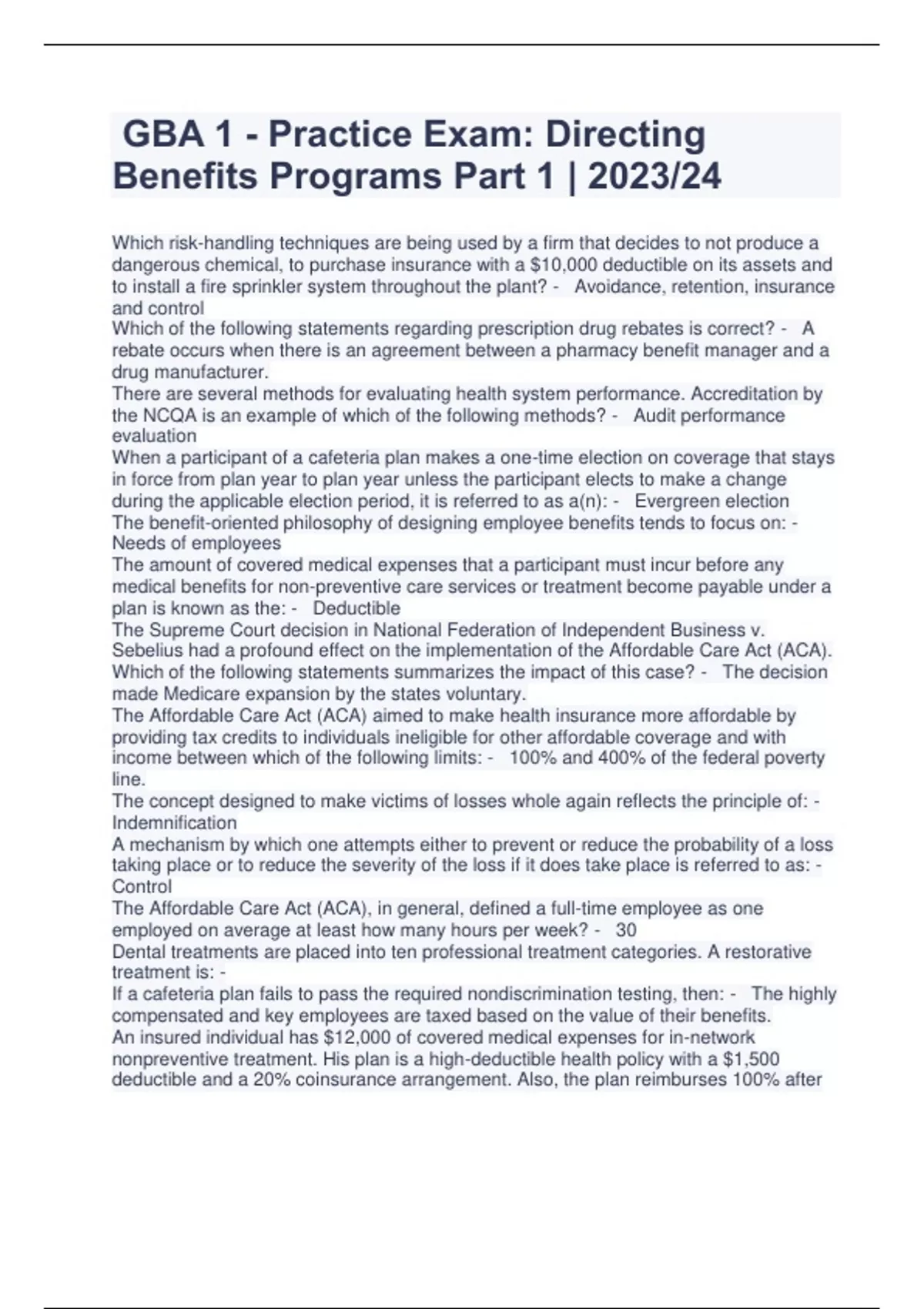 GBA 1 - Practice Exam: Directing Benefits Programs Part 1 | 2023/24