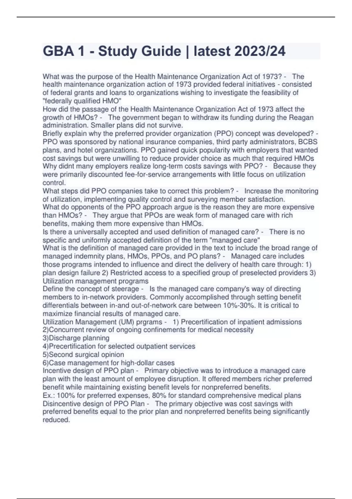 gba 1 study guide latest 202324