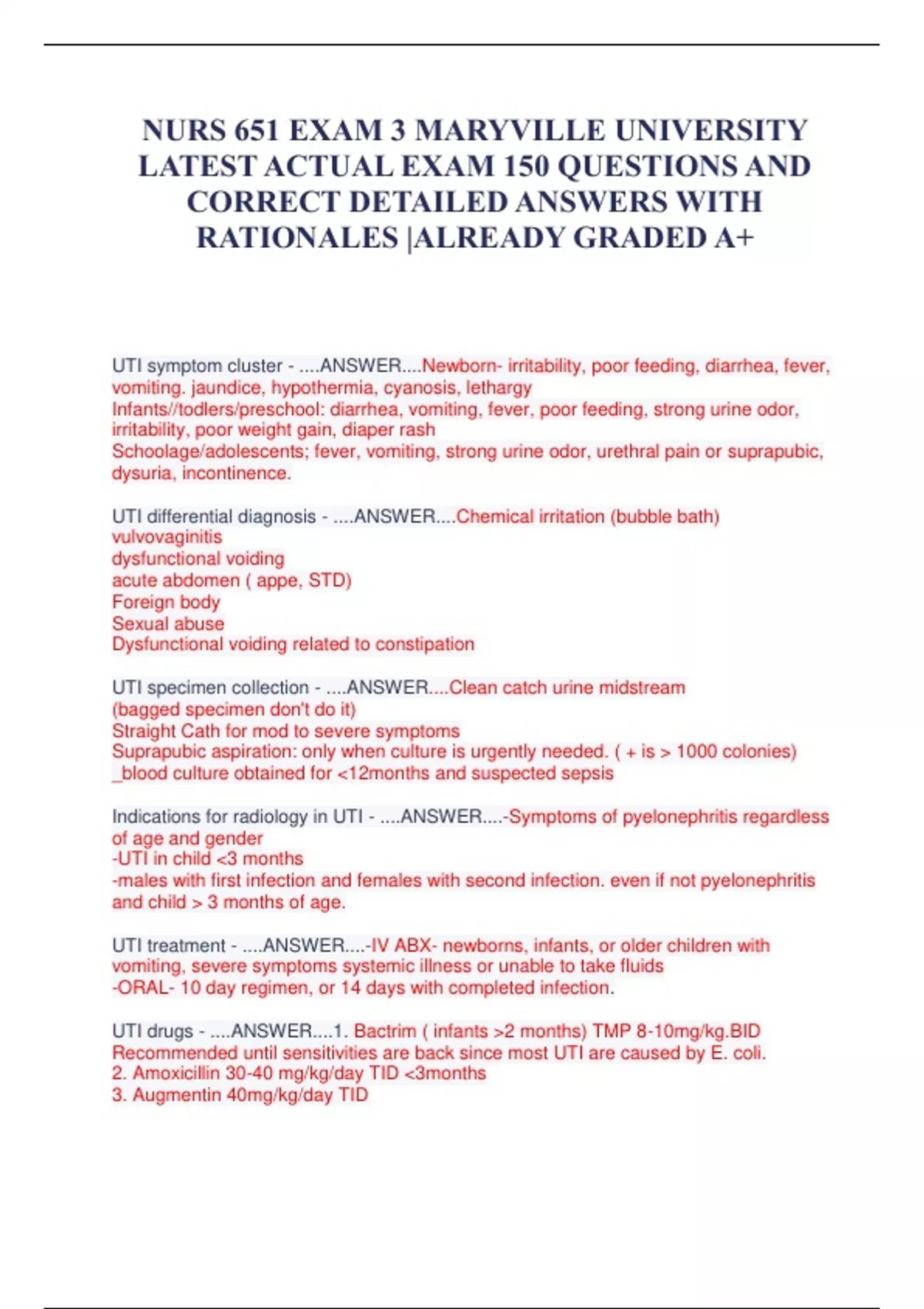 NURS 651 EXAM 3 MARYVILLE UNIVERSITY LATEST ACTUAL EXAM 150 QUESTIONS AND CORRECT DETAILED ANSWERS WITH RATIONALES |ALREADY GRADED A+