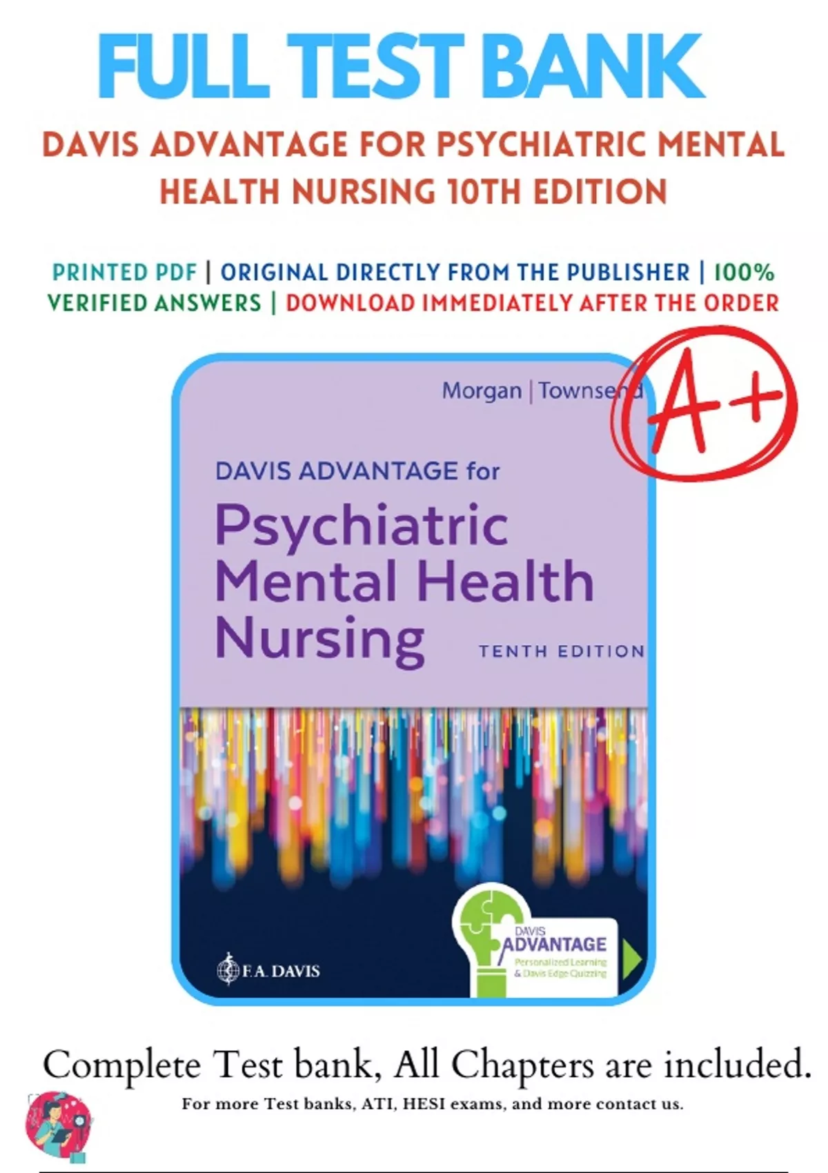 Test Bank for Davis Advantage for Psychiatric Mental Health Nursing, 10th Edition, Karyn I. Morgan, Mary C. Townsend Chapter 1-43|Complete Guide A+