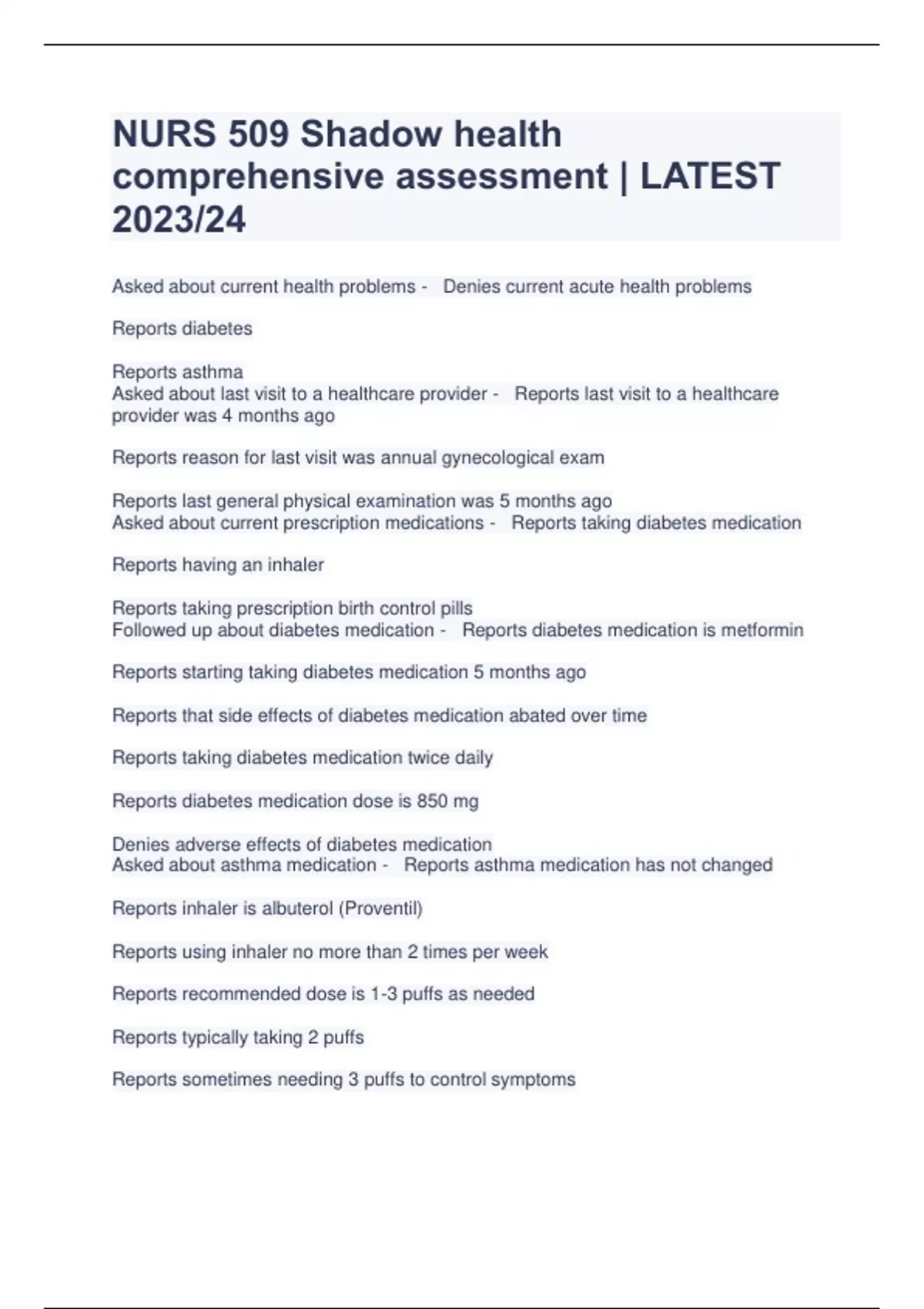 NURS 509 Shadow health comprehensive assessment | LATEST 2023/24
