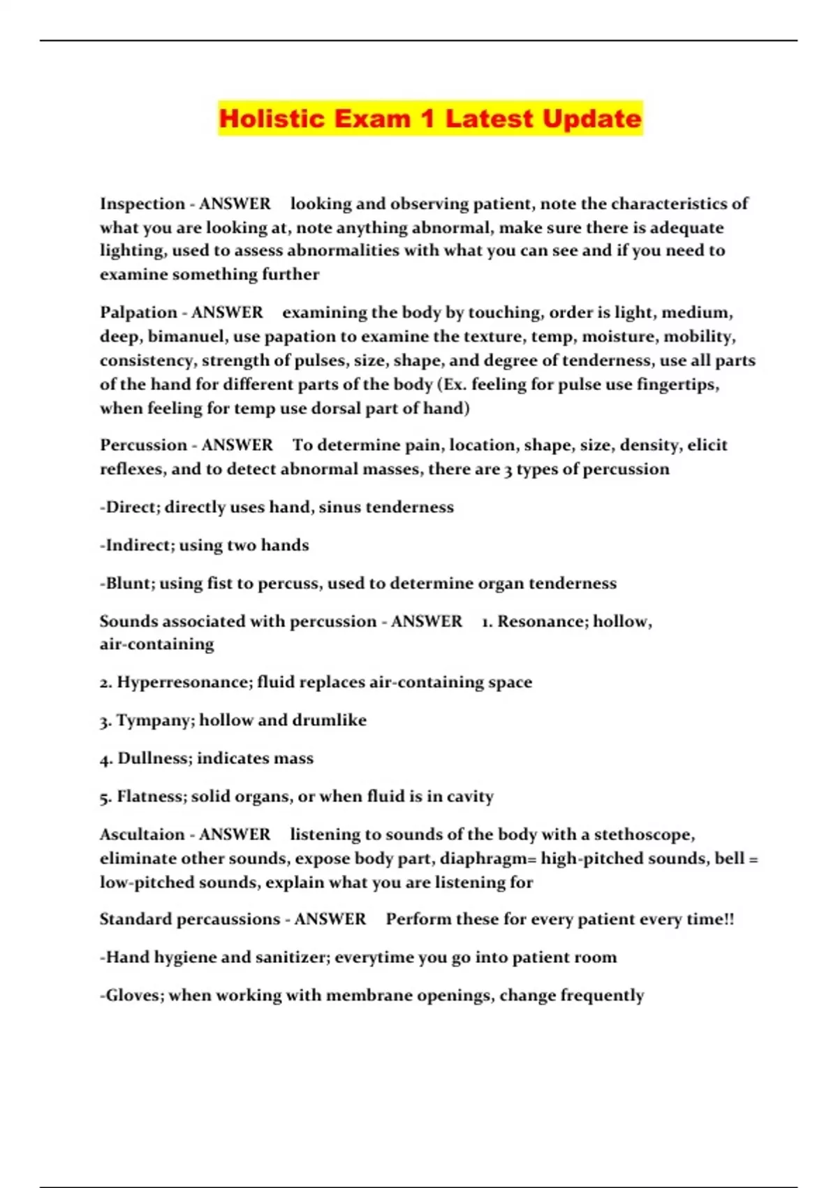 holistic exam 1 latest update