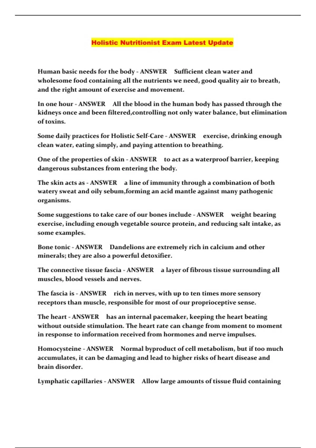 Holistic Nutritionist Exam Latest Update...