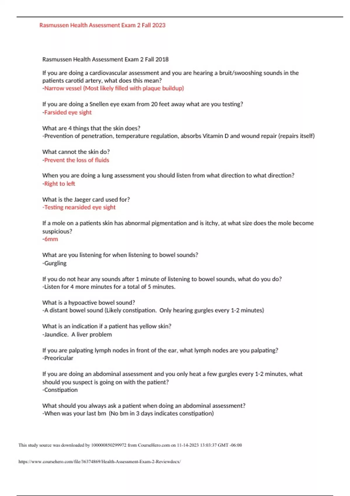Rasmussen Health Assessment Exam 2 Fall 2023