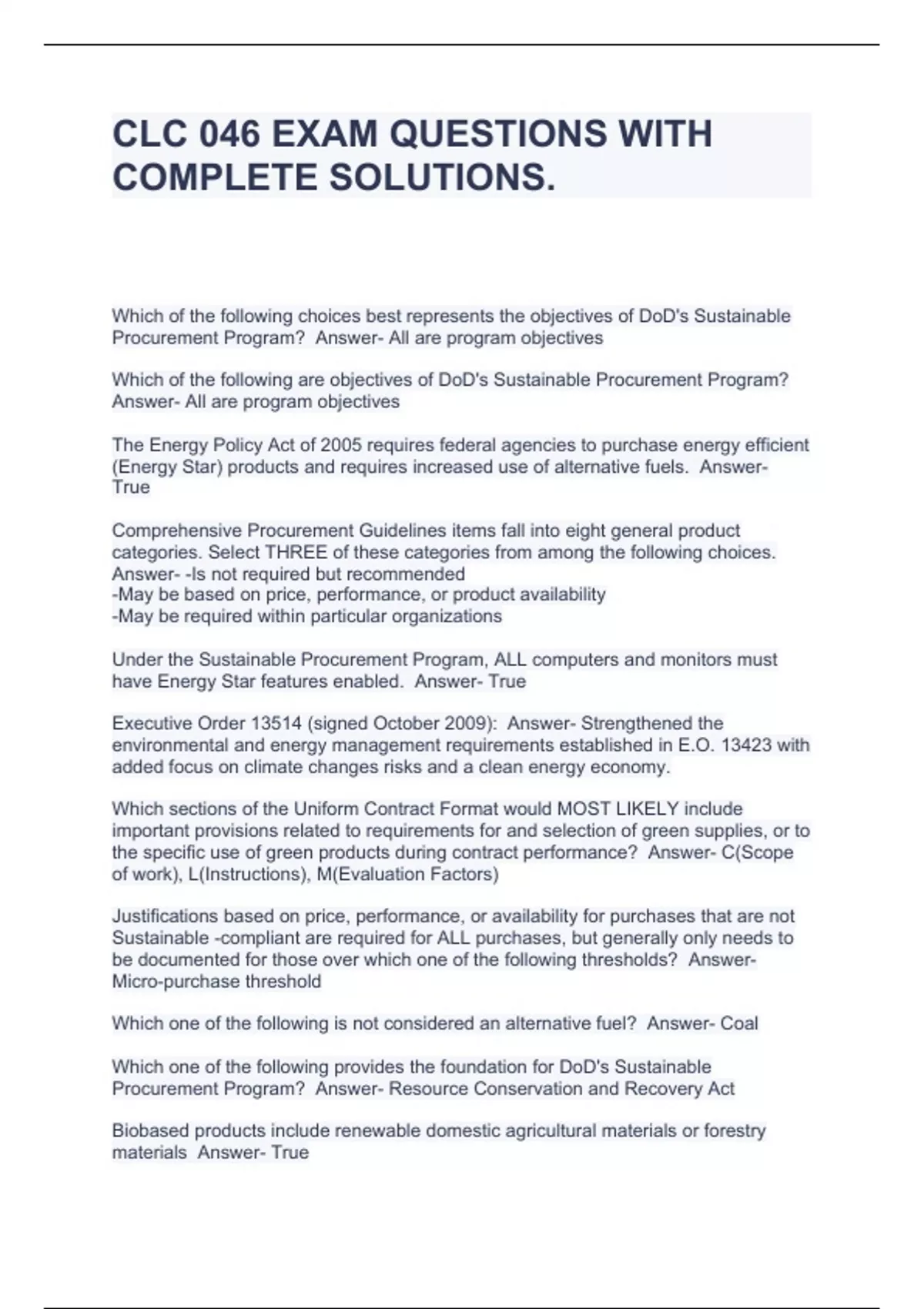 CLC 046 EXAM QUESTIONS WITH COMPLETE SOLUTIONS.