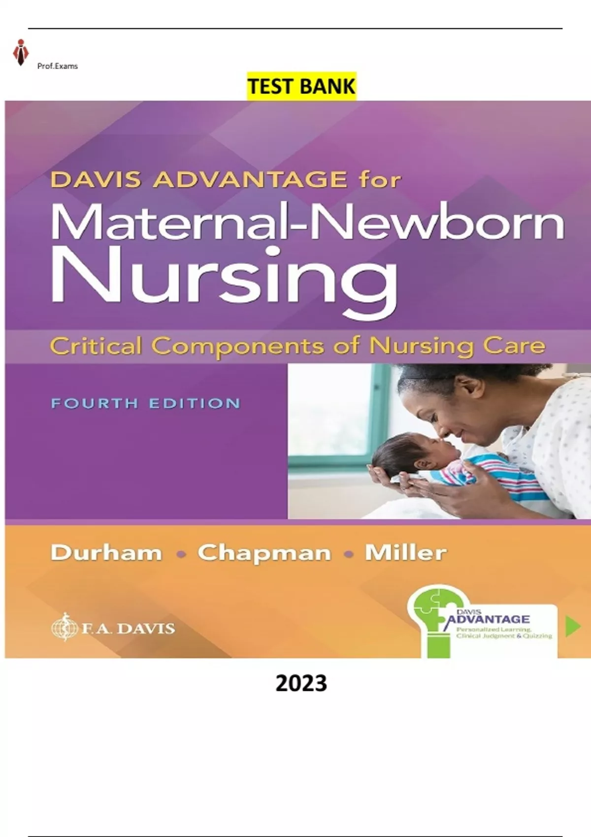 Davis Advantage for Maternal-Newborn Nursing Critical Components of Nursing Care 4th Edition by Connie Durham, Roberta Chapman, Linda Miller - Complete Elaborated and Latest Test Bank. ALL Chapters(1-19) included and updated for 2023