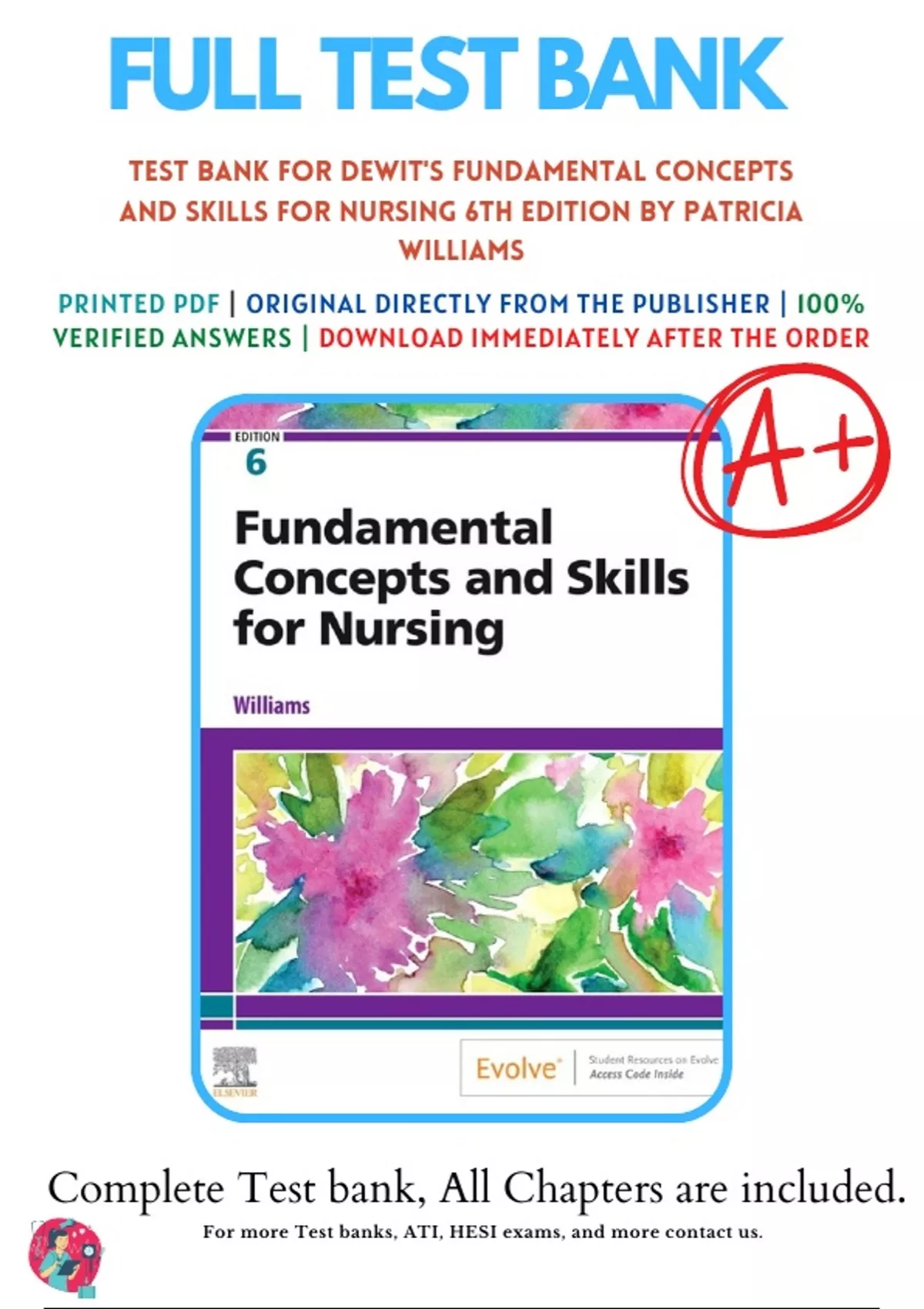 Test Bank Complete For Fundamental Concepts and Skills for Nursing 6th Edition by Patricia Williams (), 9780323694766, Chapter 1-41 All Chapters with Answers and Rationals