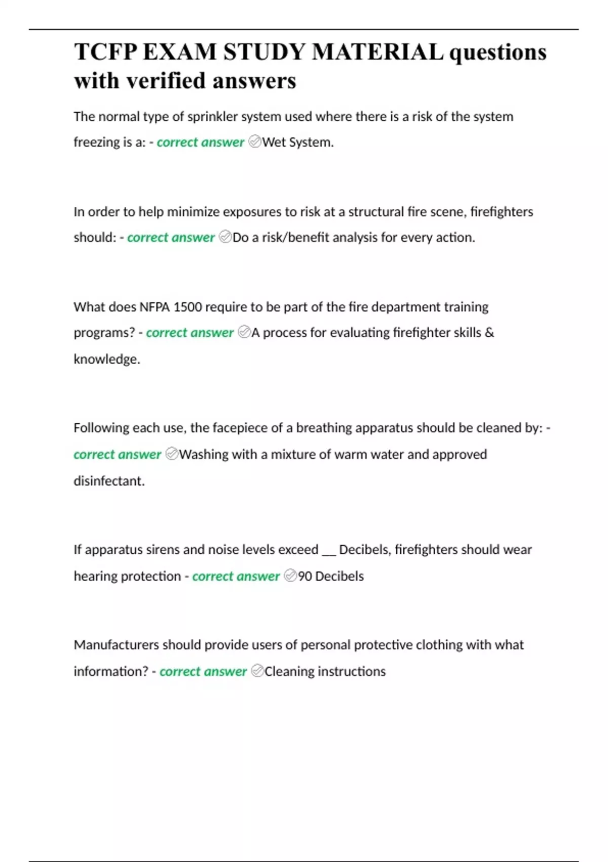 TCFP EXAM STUDY MATERIAL questions with verified answers