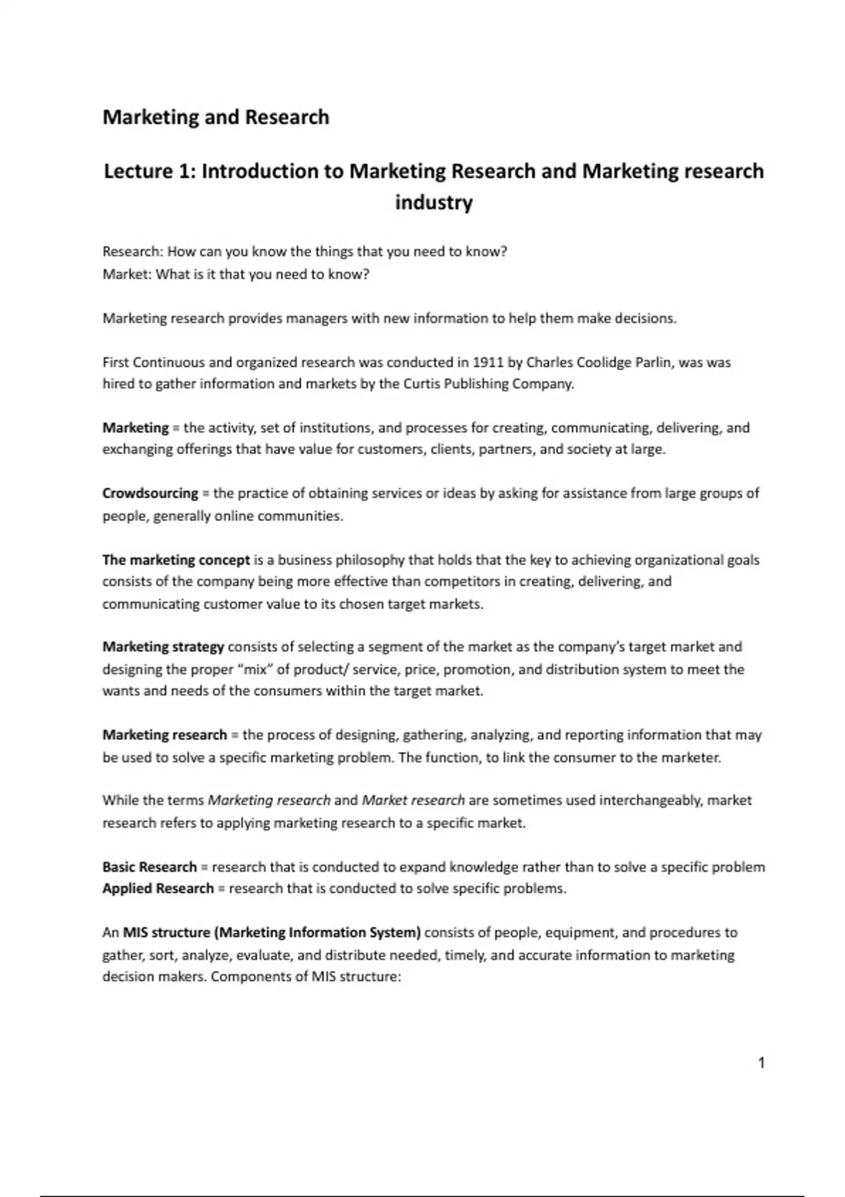 Lecture 1: Introduction to Marketing Research and Marketing research