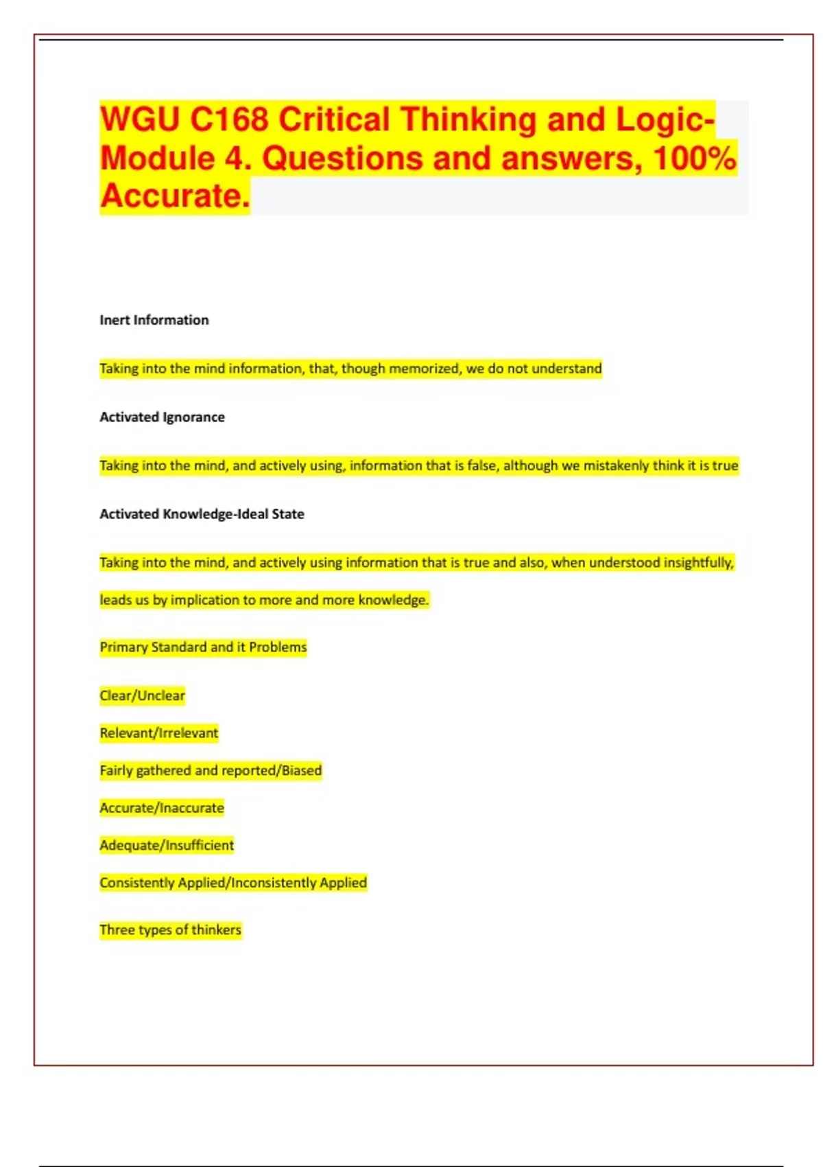 WGU C168 Critical Thinking and Logic-Module 4. Questions and answers, 100% Accurate.