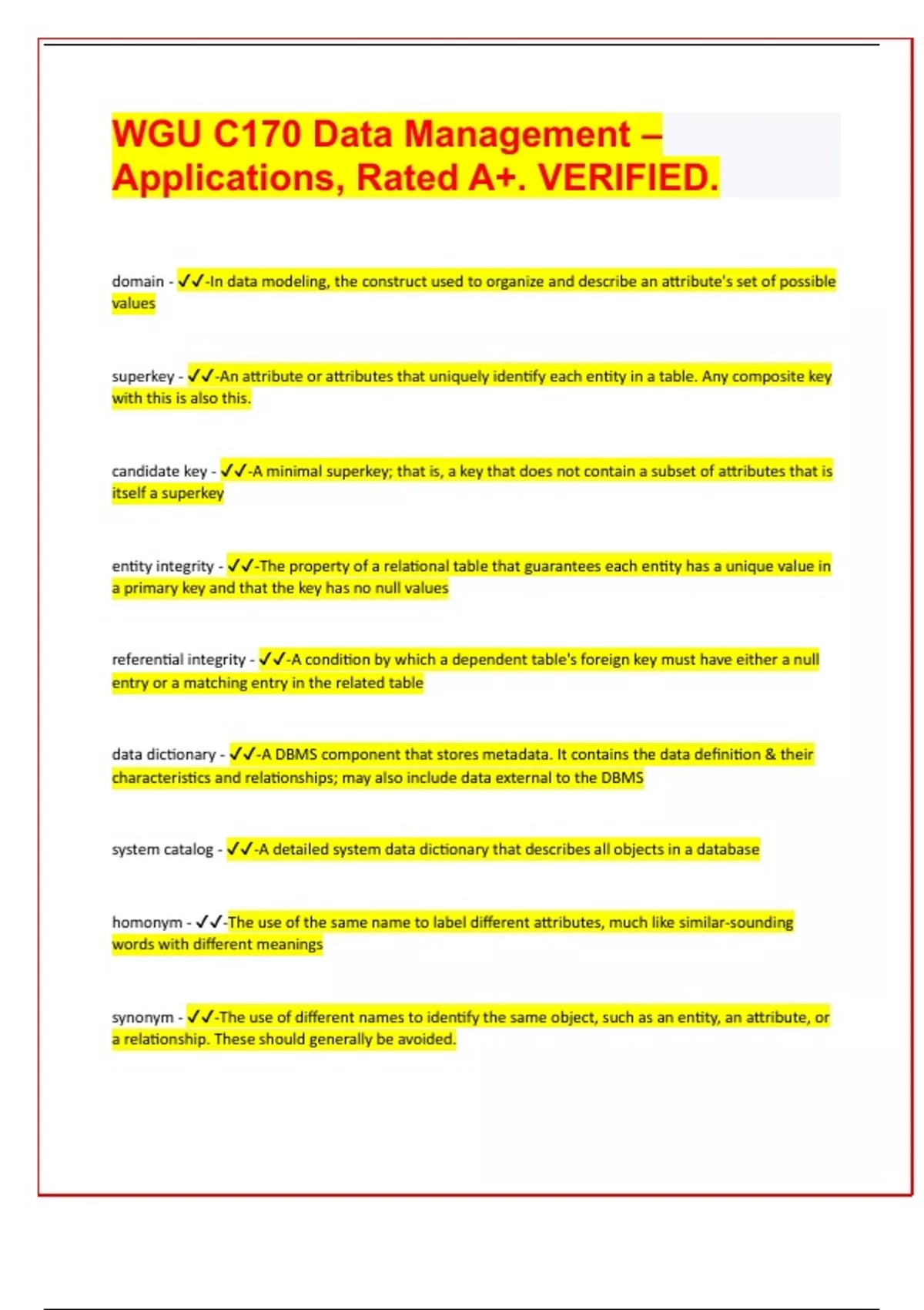WGU C170 Data Management – Applications, Rated A+. VERIFIED