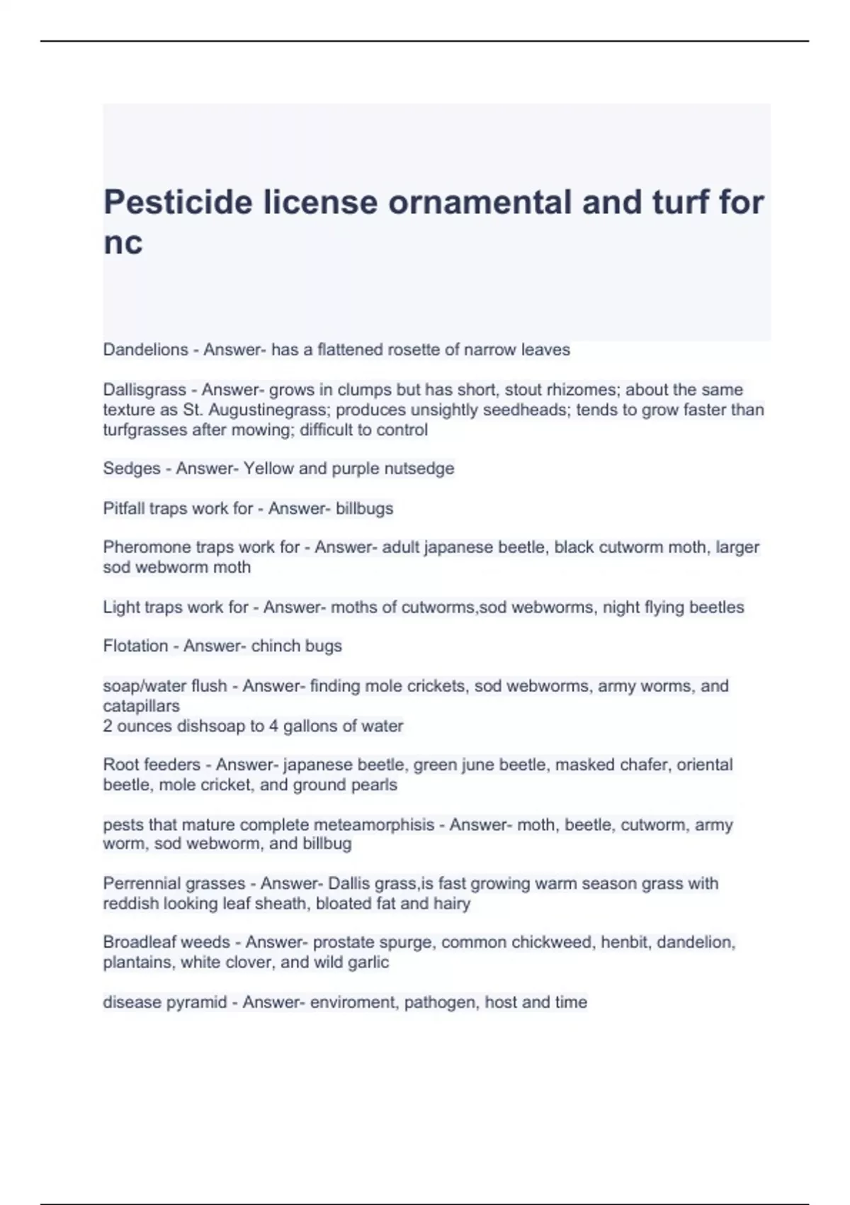 Pesticide license ornamental and turf for nc exam questions and answers