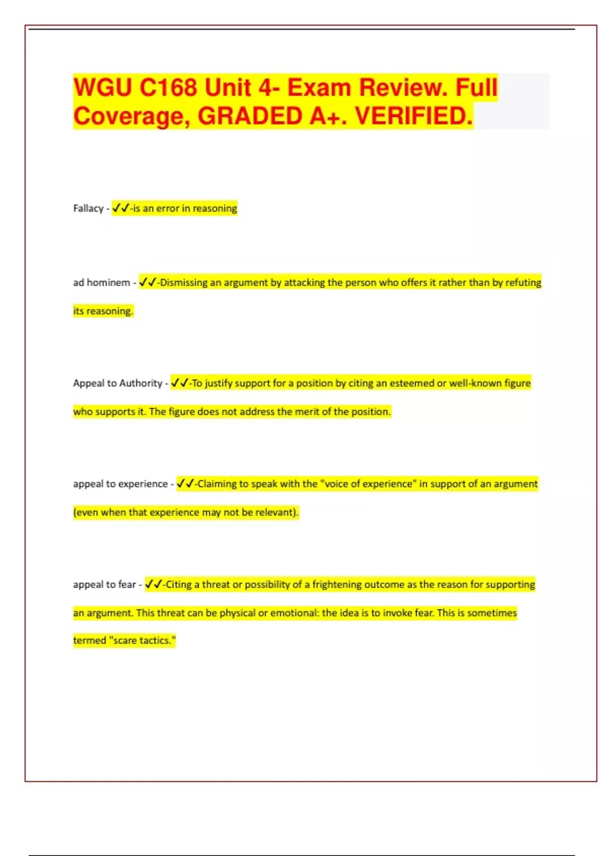 WGU C168 Unit 4- Exam Review. Full Coverage, GRADED A+. VERIFIED.