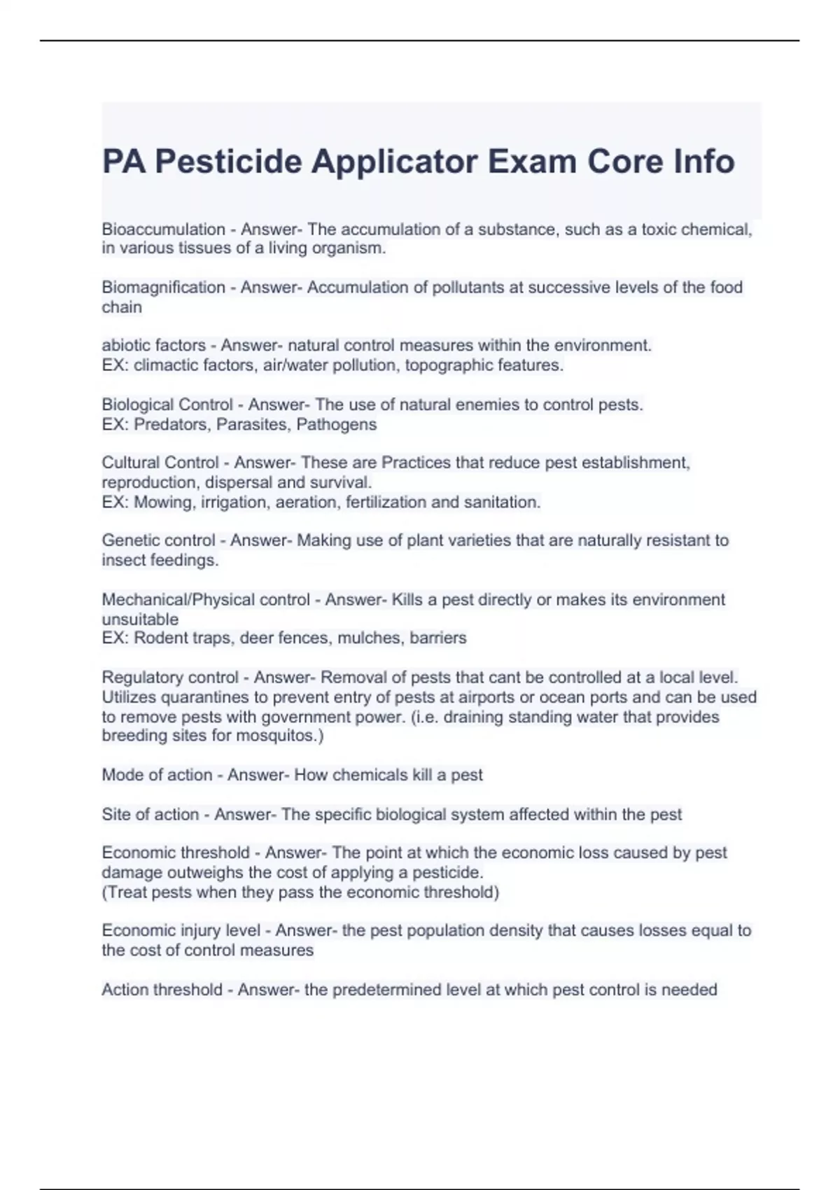 PA Pesticide Applicator Exam Core Info Questions and Answers