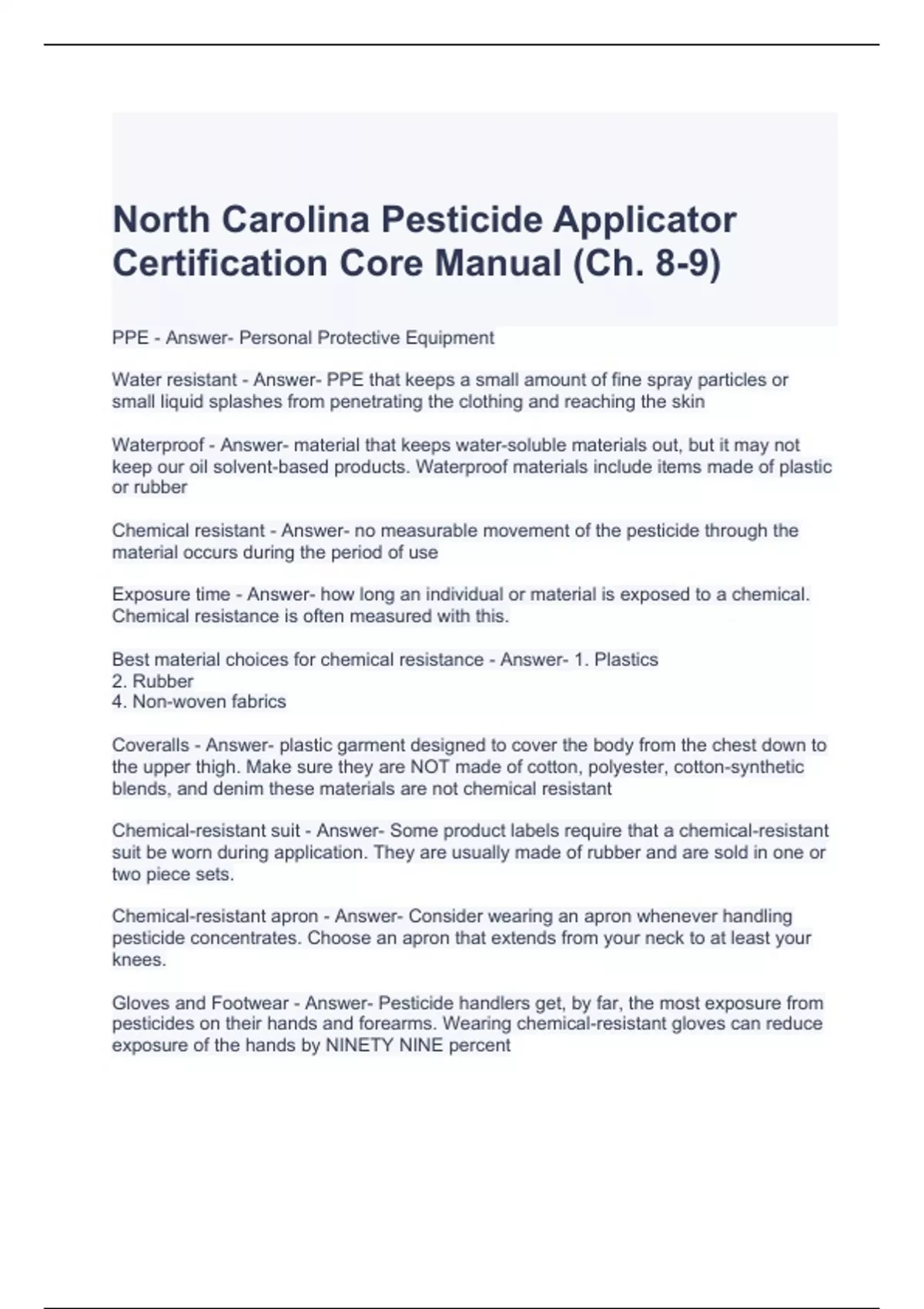 North Carolina Pesticide Applicator Certification Core Manual (Ch. 8-9) Exam