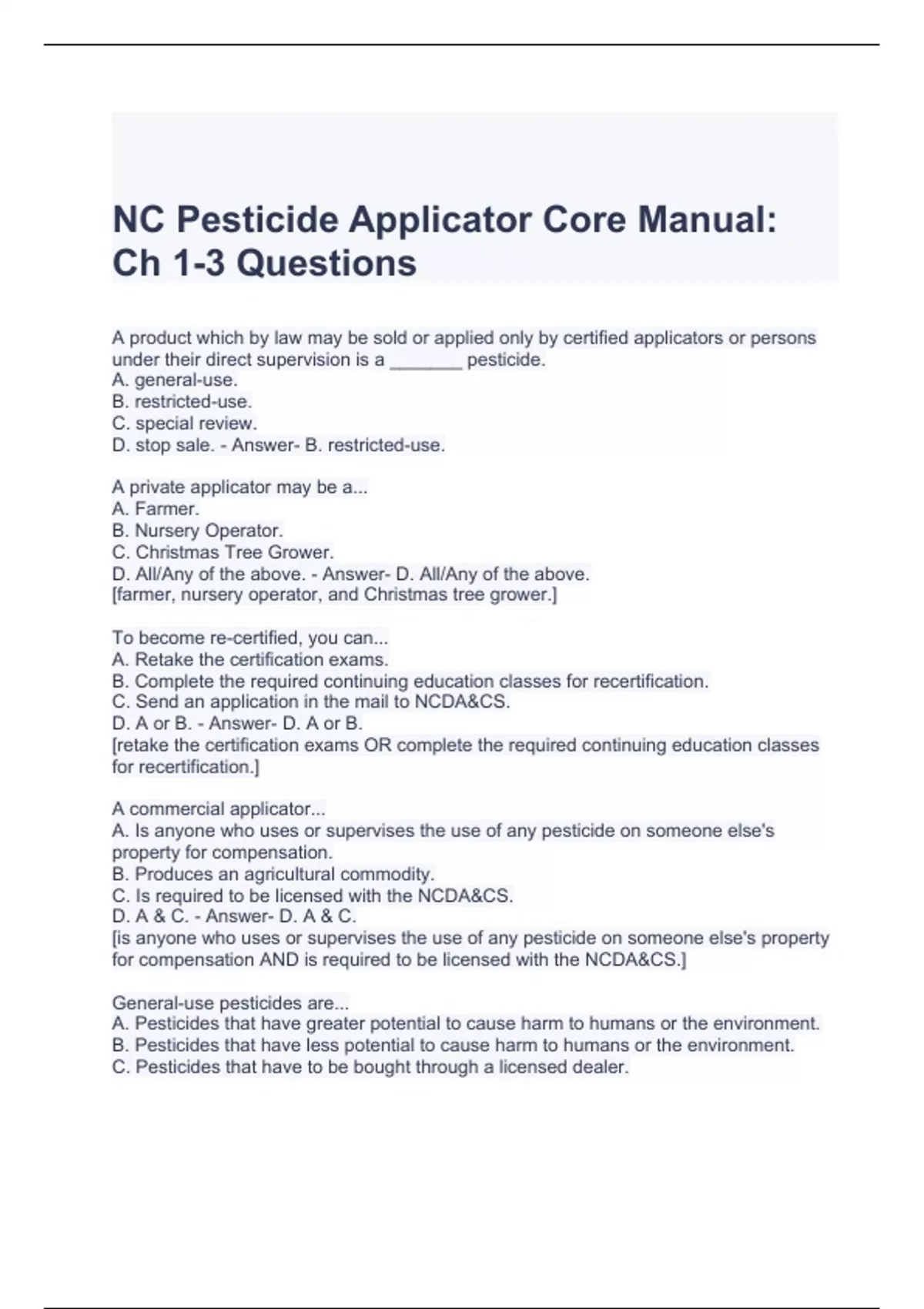 NC Pesticide Applicator Core Manual Ch 1-3 Questions and Answers