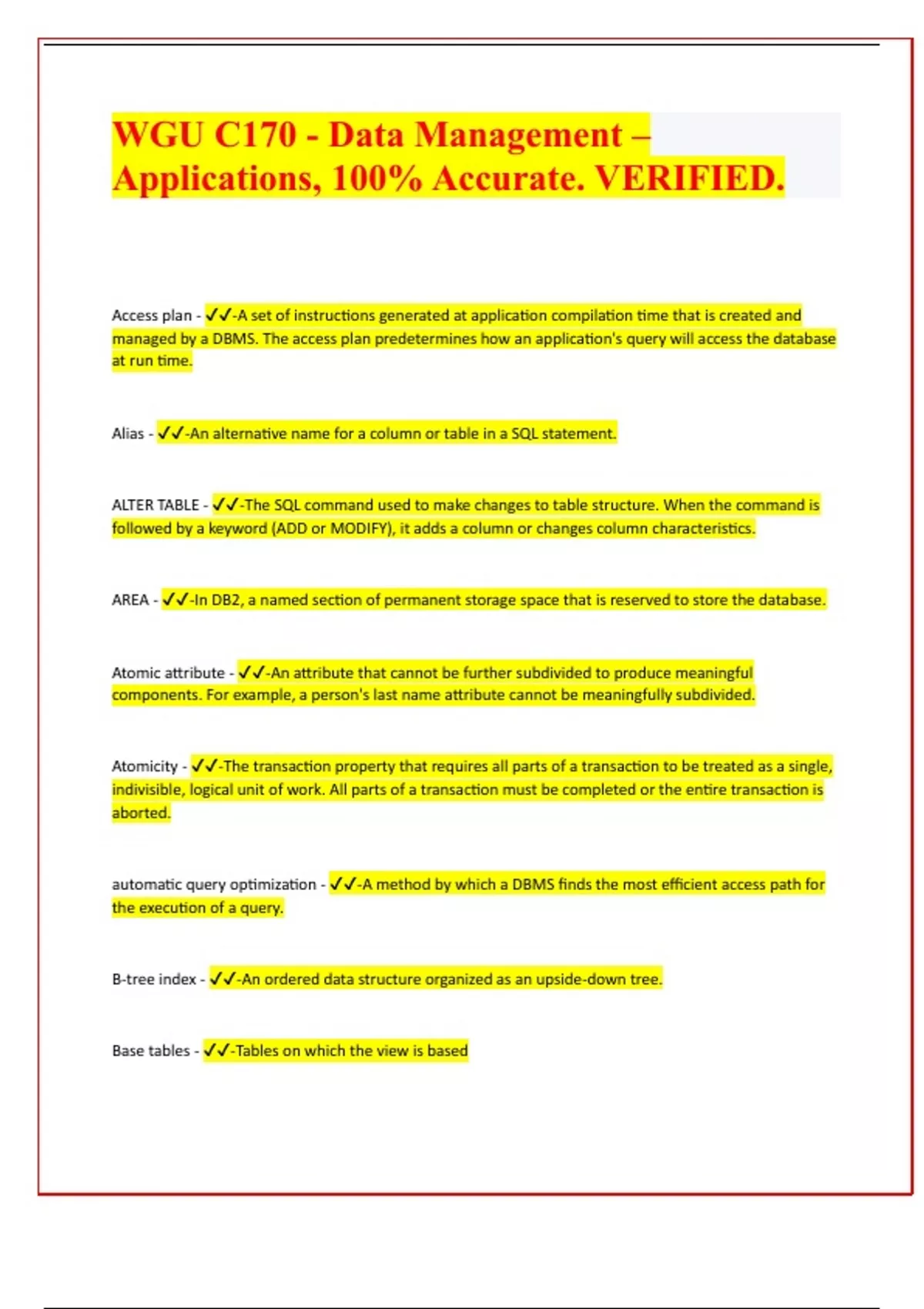 WGU C170 - Data Management – Applications, 100% Accurate. VERIFIED