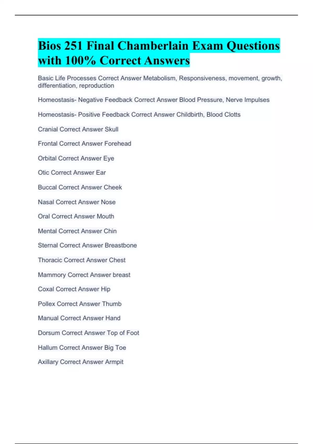 Bios 251 Final Chamberlain Exam Questions with 100% Correct Answers