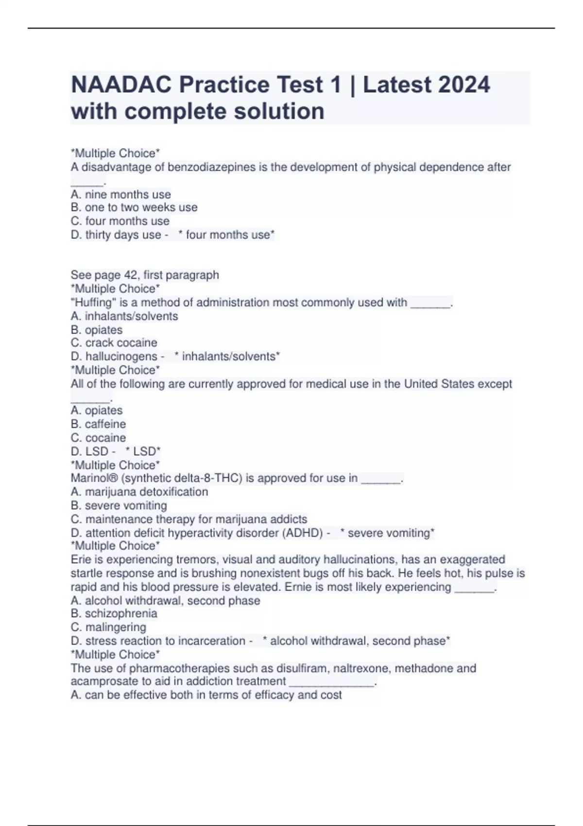 NAADAC Practice Test 1 | Latest 2024 with complete solution