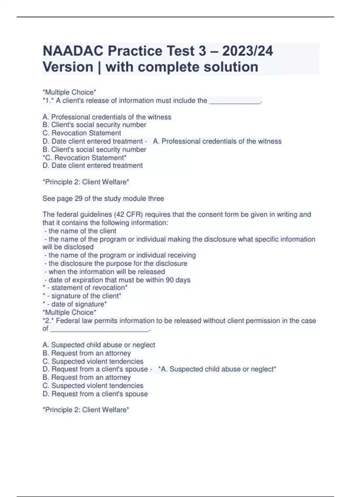 NAADAC Practice Test 3 – 2023/24 Version | with complete solution