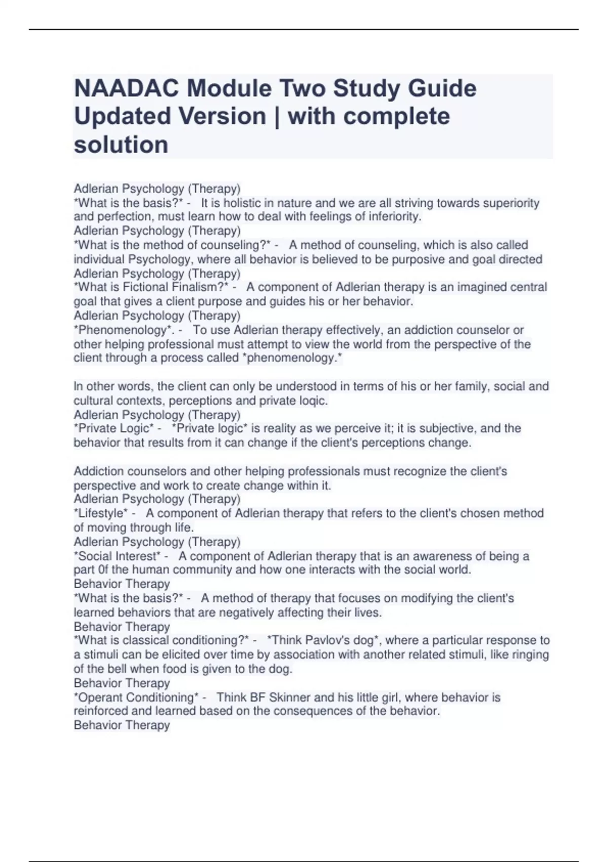 NAADAC Module Two Study Guide Updated Version | with complete solution