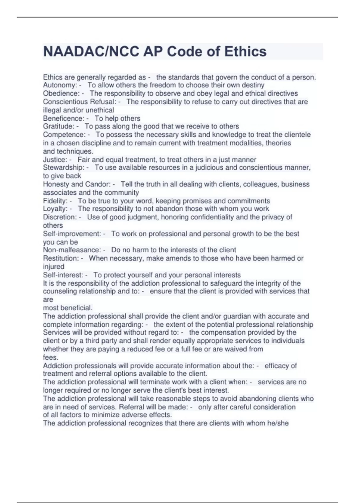 NAADAC/NCC AP Code of Ethics
