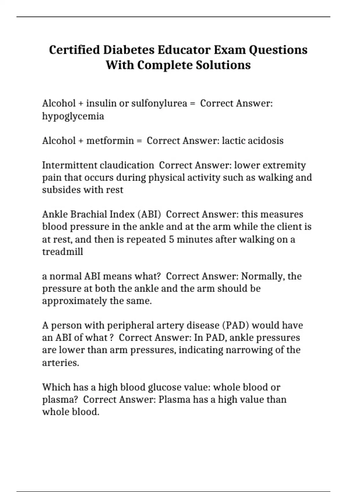 Certified Diabetes Educator Exam Questions With Complete Solutions