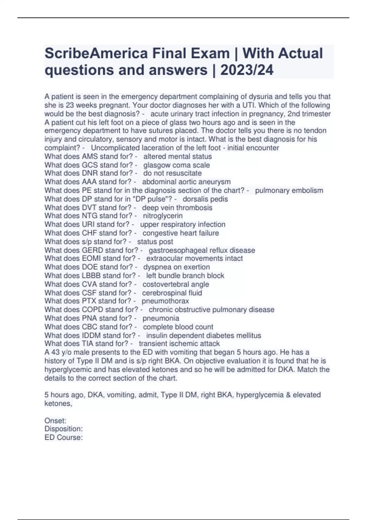 ScribeAmerica Final Exam | With Actual questions and answers | 2023/24