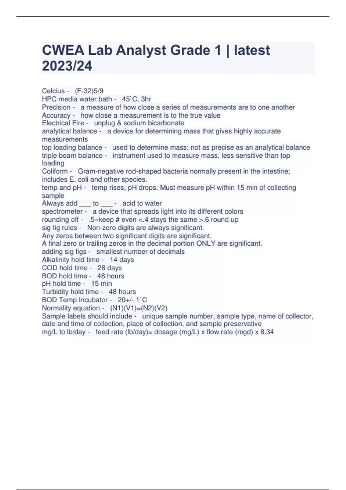 CWEA Lab Analyst Grade 1 | latest 2023/24