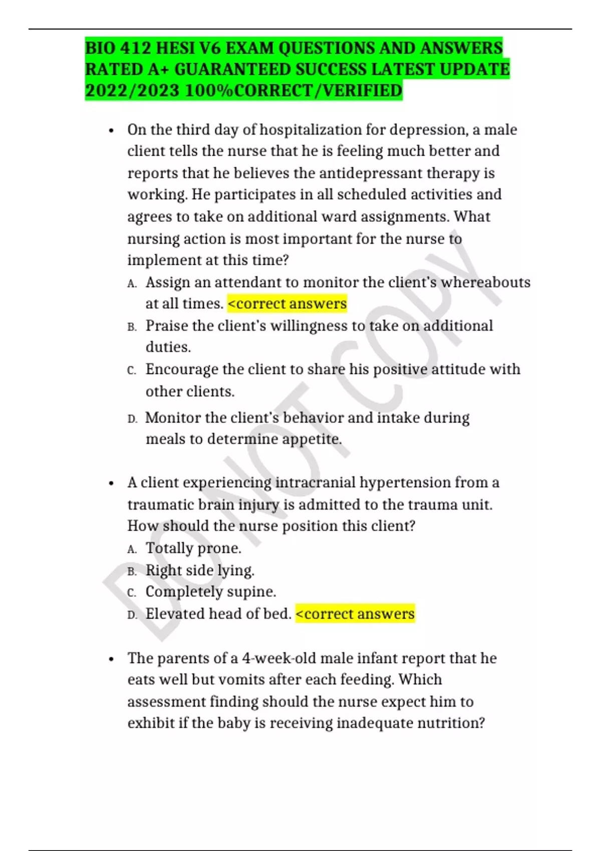 BIO 412 HESI V6 EXAM QUESTIONS AND ANSWERS RATED A+ GUARANTEED SUCCESS LATEST UPDATE 2022/2023 100%CORRECT/VERIFIED