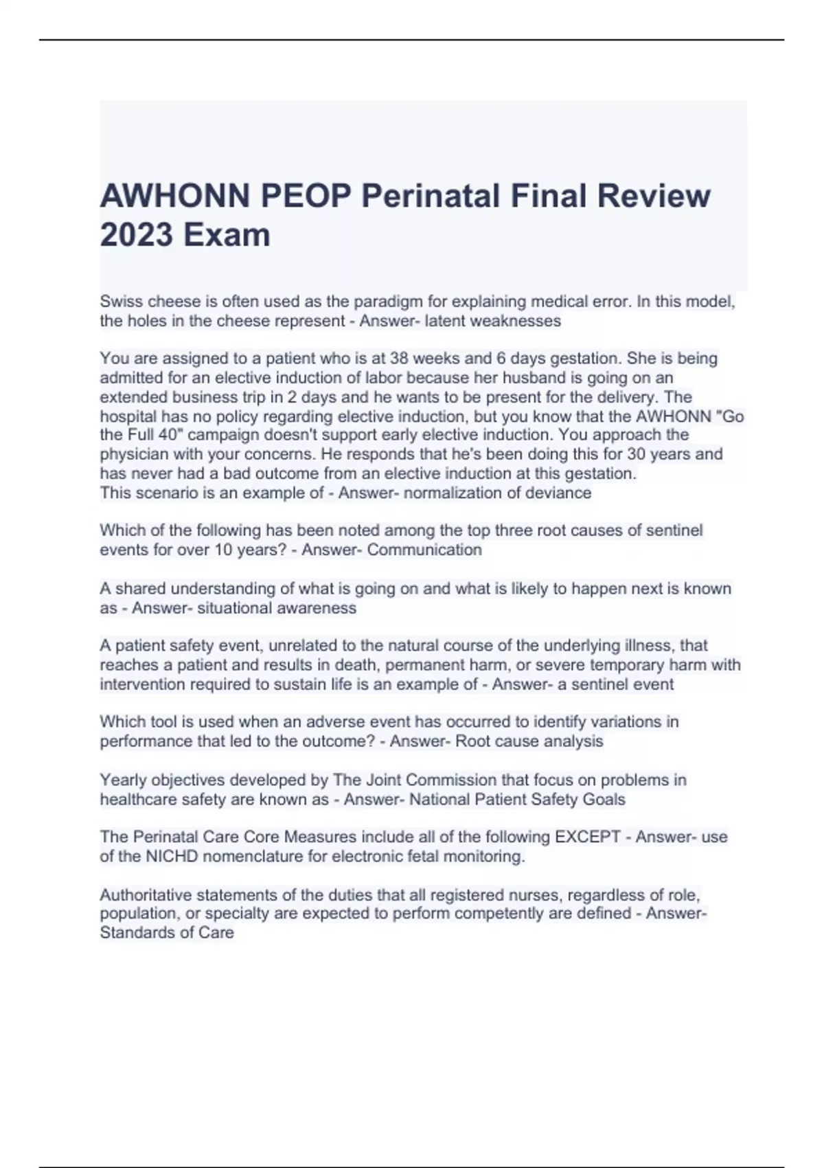 awhonn peop perinatal final review 2023 exam