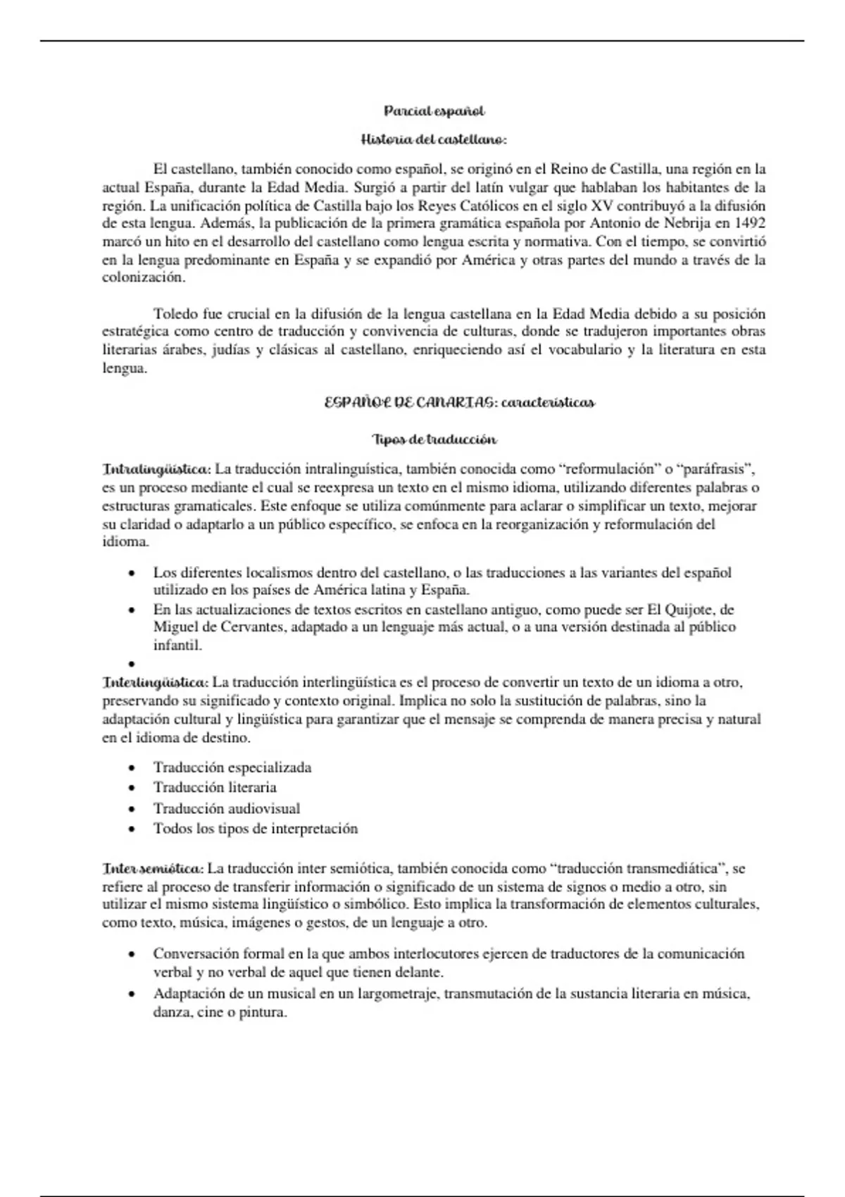 Resumen del tema de historia del español, conceptos y sintaxis explicada.