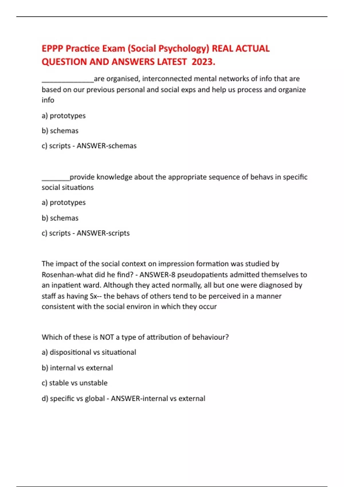 EPPP Practice Exam (Social Psychology) REAL ACTUAL QUESTION AND ANSWERS LATEST 2023.