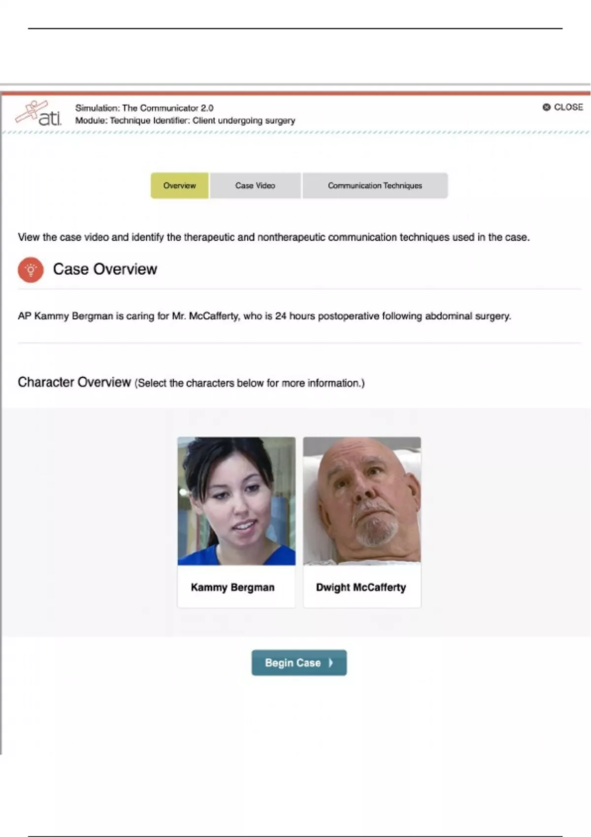 ATI MED SURG SIMULATION -THE COMMUNICATOR 2.0 MODULE: TECHNIQUE IDENTIFIER- CLIENT UNDERGOING SURGERY