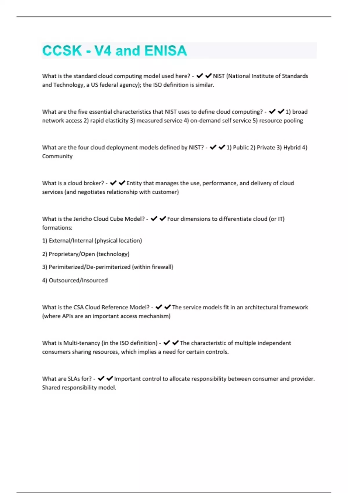 CCSK - V4 and ENISA Questions With Complete Solutions Graded A+
